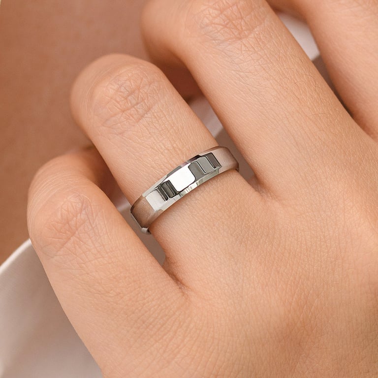 • die abgeschrägten Kanten verleihen den Ringen eine interessante Silhouette