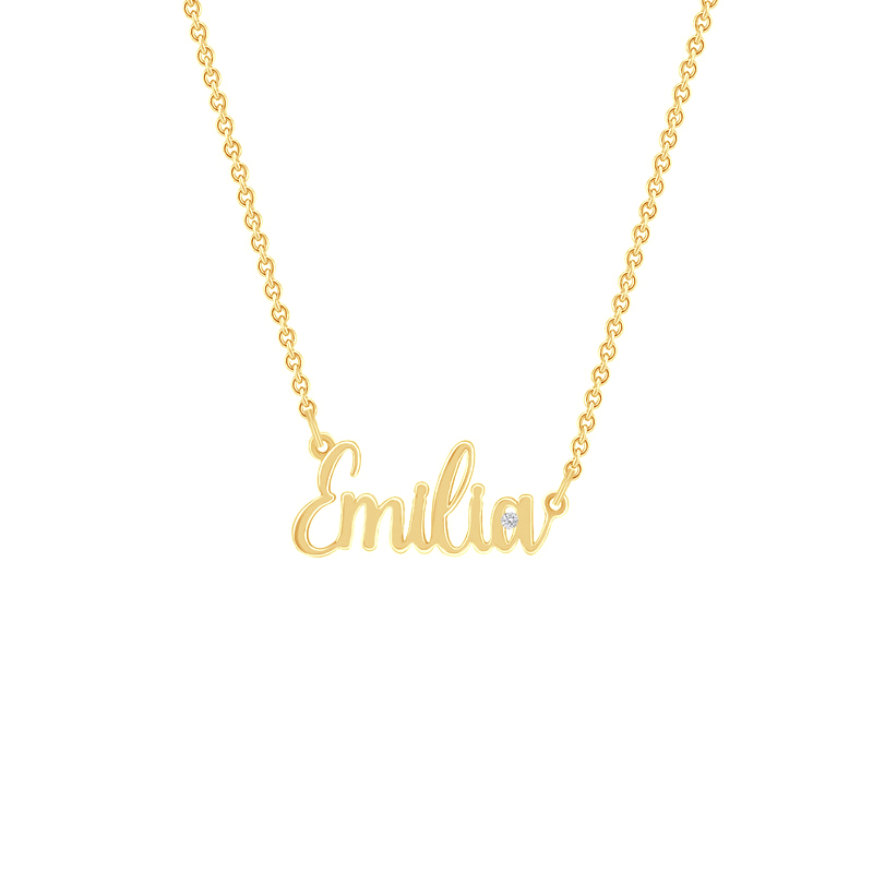 • einfache Goldhalskette mit Namen und schimmerndem Diamanten