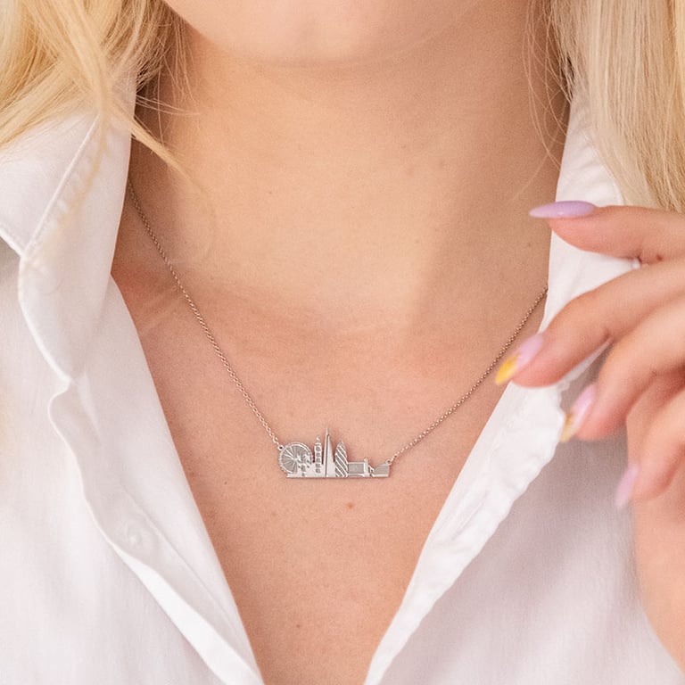 • Goldener oder Platinanhänger mit der Silhuette der Sehenswürdigkeiten der imposanten Stadt London mit der Möglichkeit einer Gravur