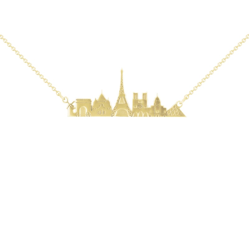 • Goldener oder Platinanhänger mit der Silhuette der Sehenswürdigkeiten der traumhaften Stadt Paris mit der Möglichkeit einer Gravur