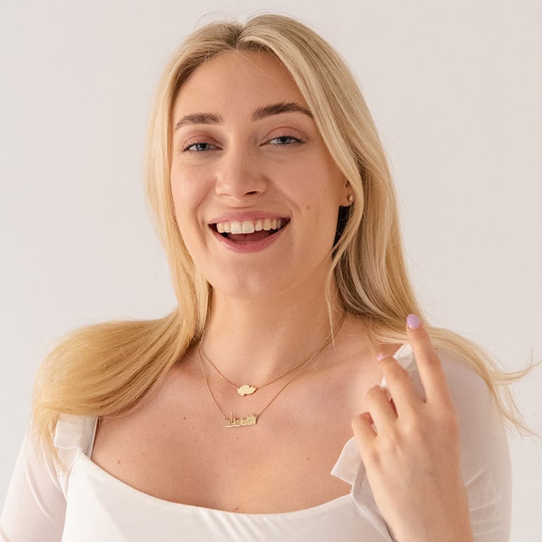 • Goldener oder Platinanhänger mit der Silhuette der Sehenswürdigkeiten der bezaubernden Stadt Prag mit der Möglichkeit einer Gravur