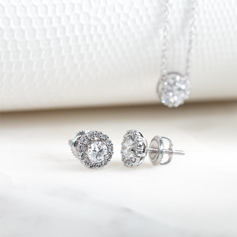 • diese können einzeln als Diamant-Ohrstecker oder als funkelnde Halo-Ohrringe getragen werden