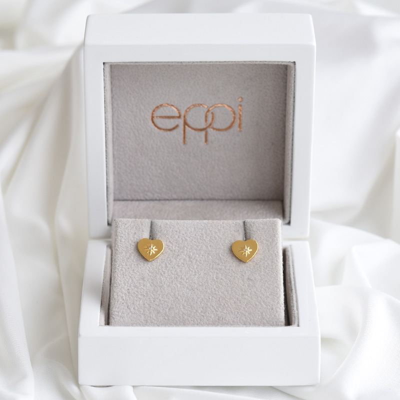 Goldene Ohrringe in Herzform mit Diamanten Petunia