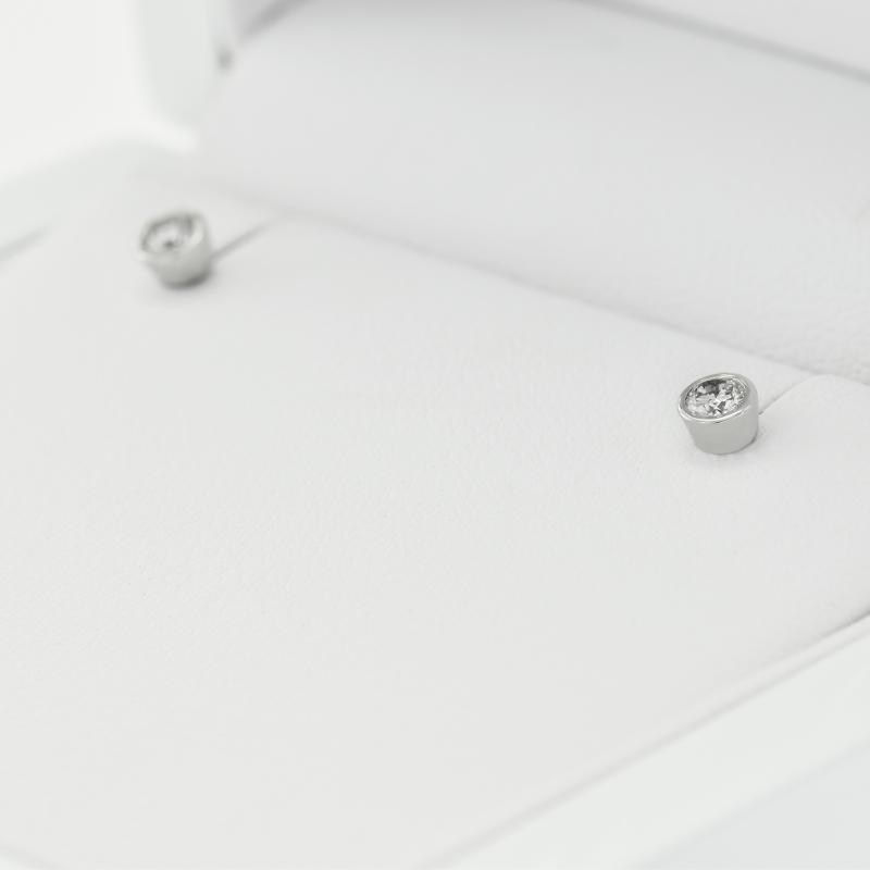 • kleine Steckohrringe aus Gold oder Platin mit Diamanten in einer Bezelfassung