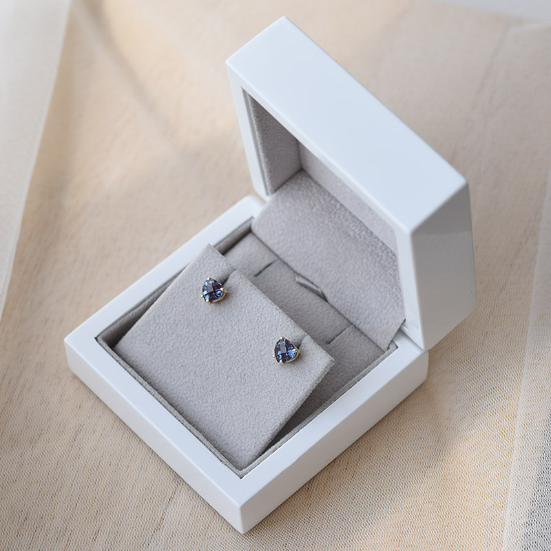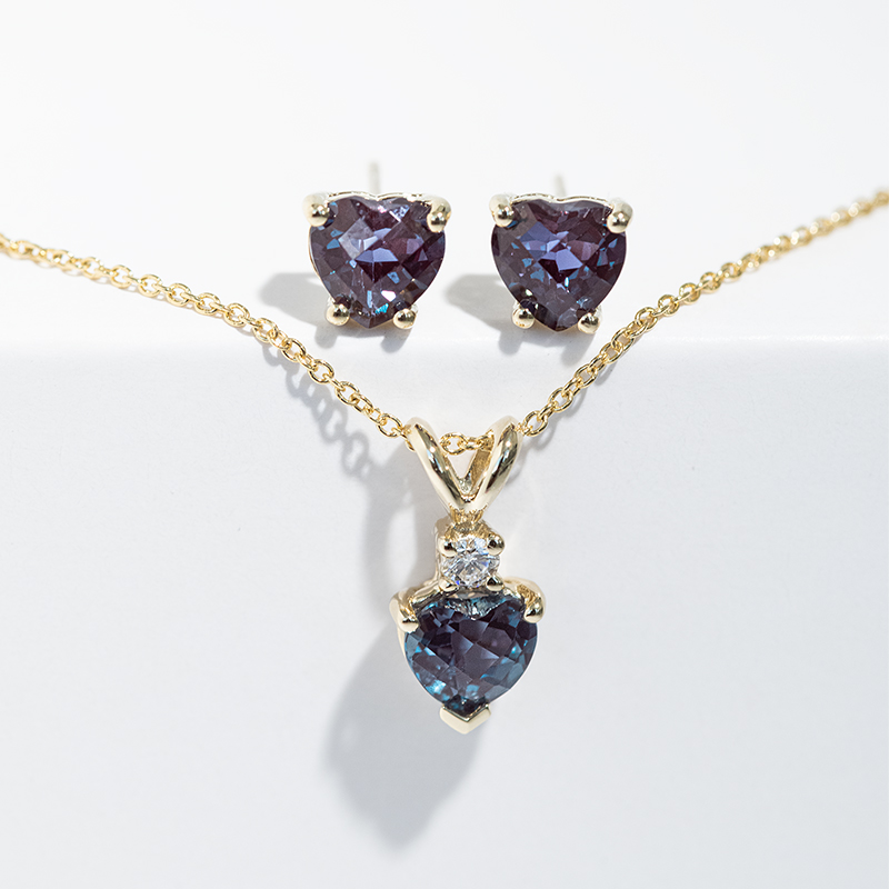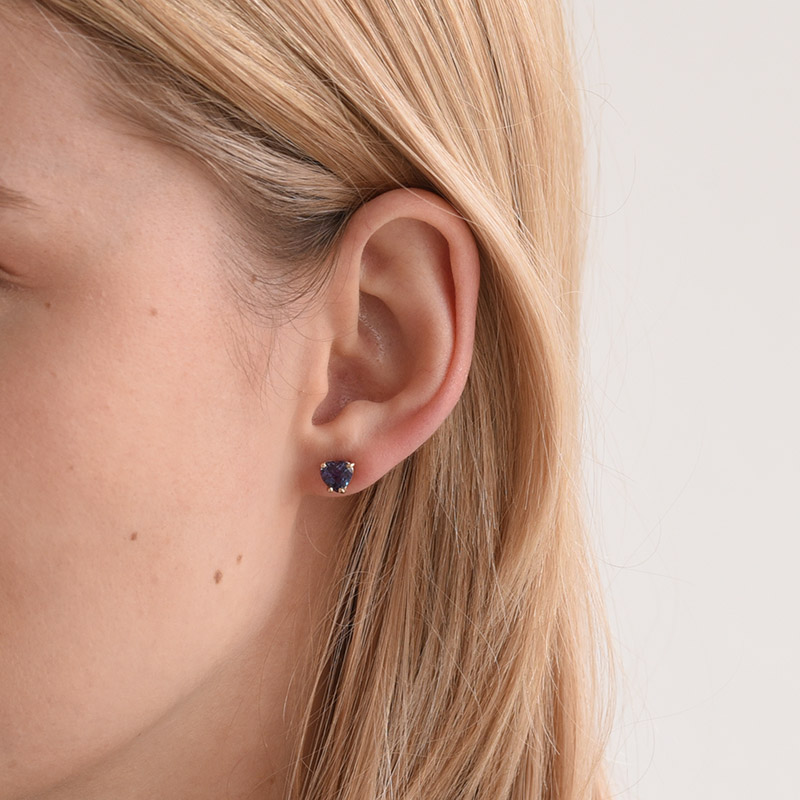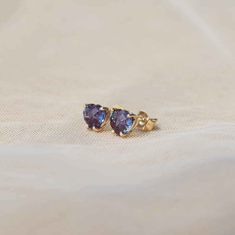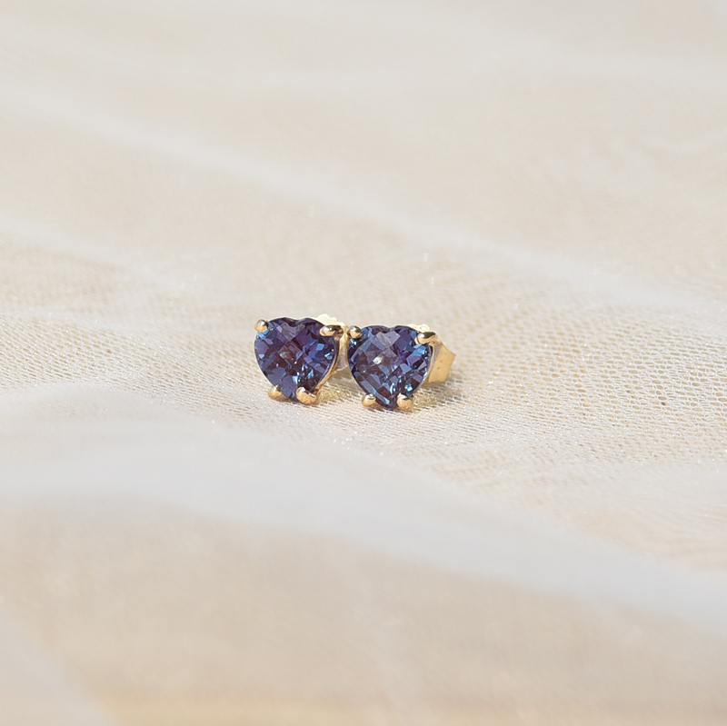 • kleine Goldohrringe mit Alexandriten in Herzform
