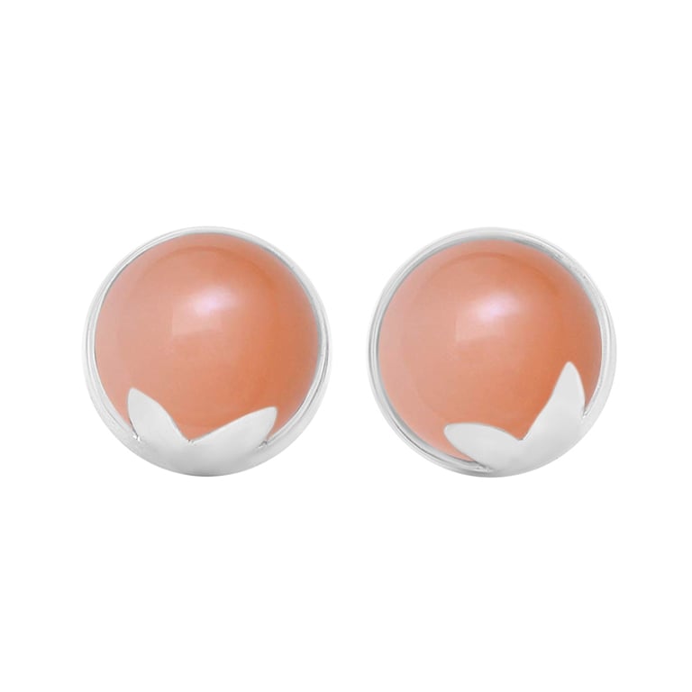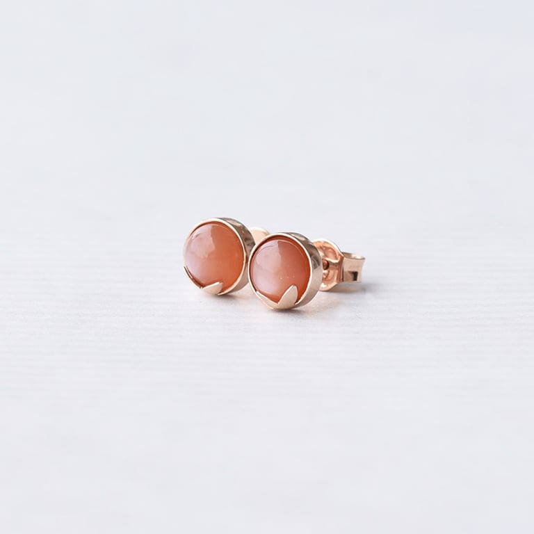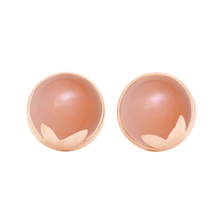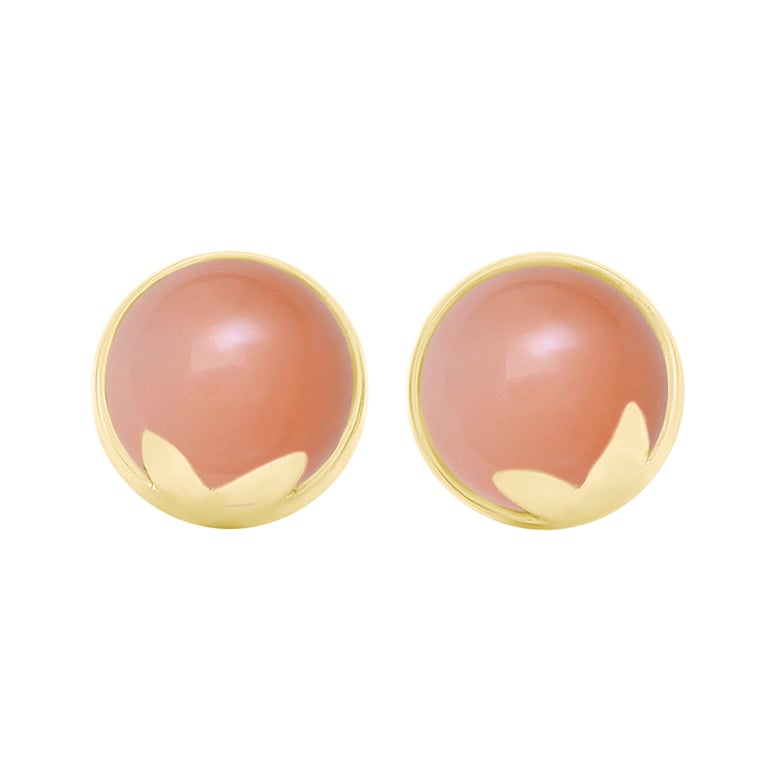 Goldene Ohrringe mit Cabochon-Mondsteinen in Pfirsich Erica