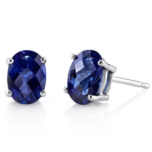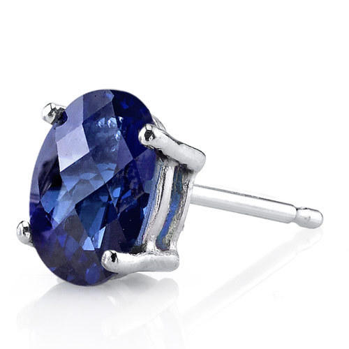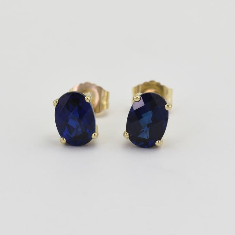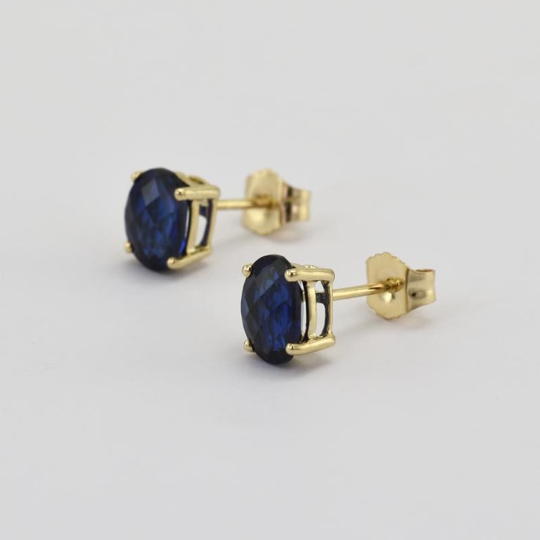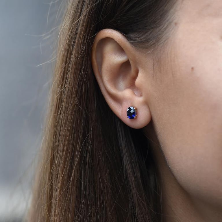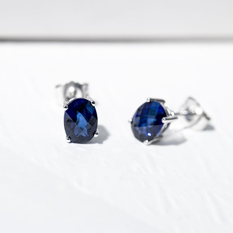 • Saphire in einem sehr dunklen Blau sind hier als Ohrstecker verarbeitet