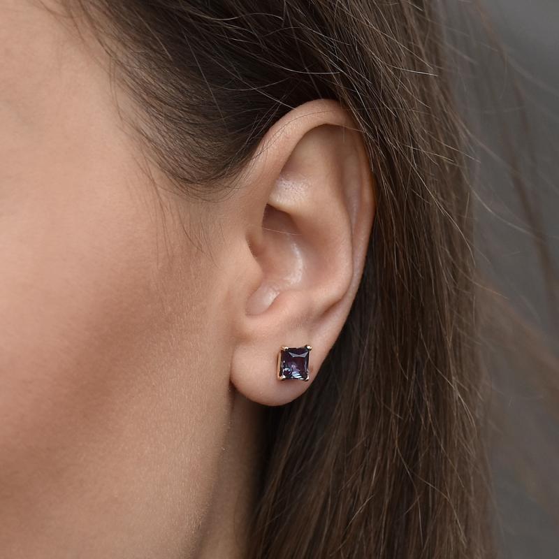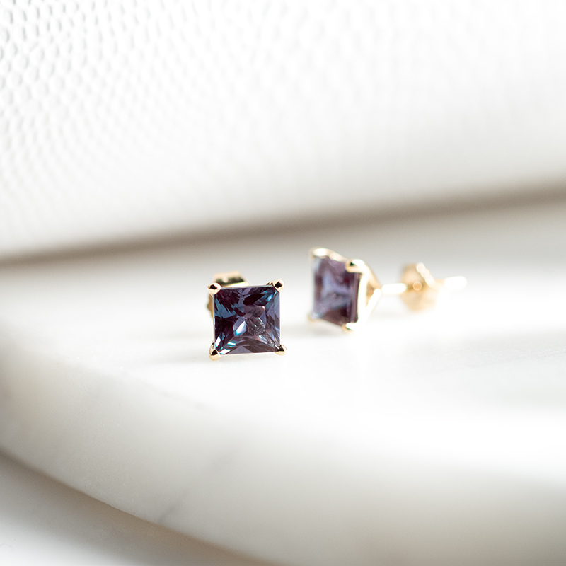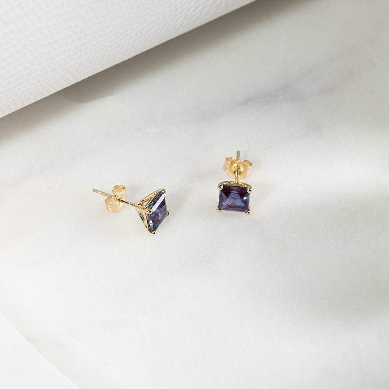 Goldene Ohrringe mit Princess-Alexandriten Enola
