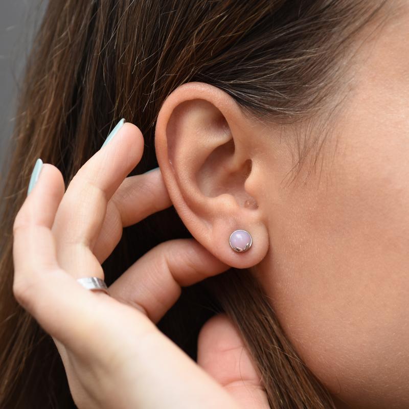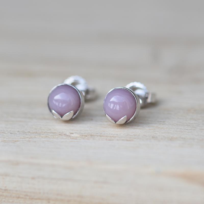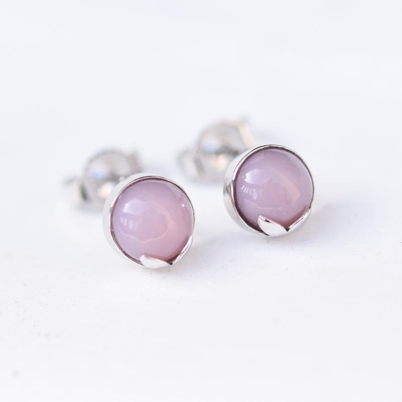 Goldene Ohrringe mit rosa Opal in Cabochon-Schliff Erica