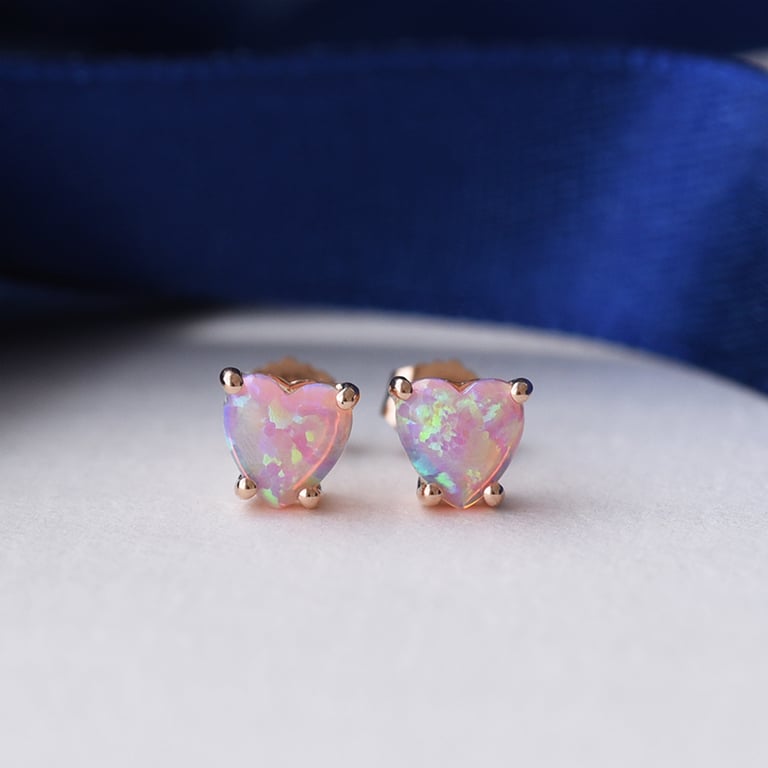 Goldene Ohrringe mit rosa Opalen in Herzform Kaciah