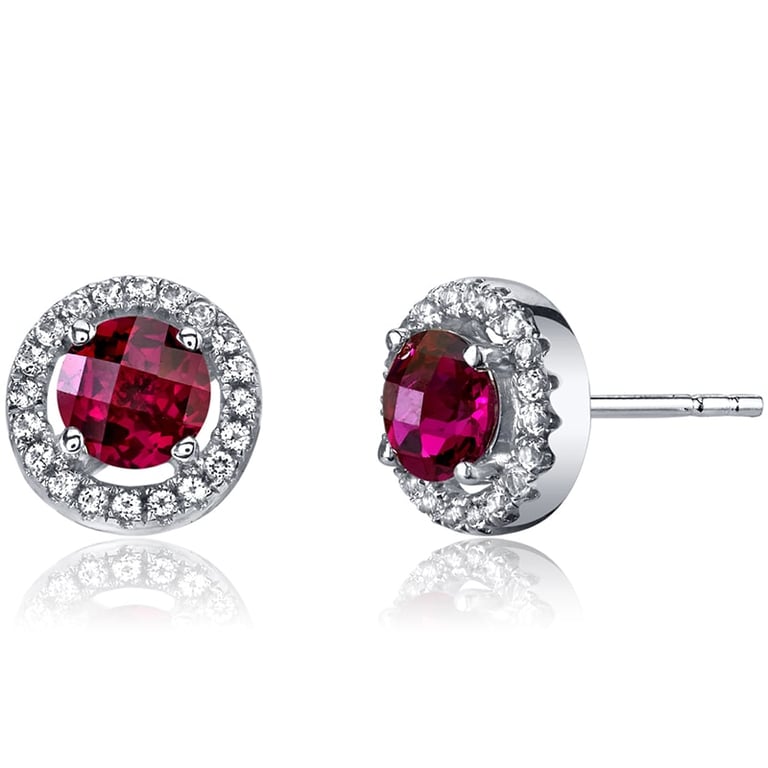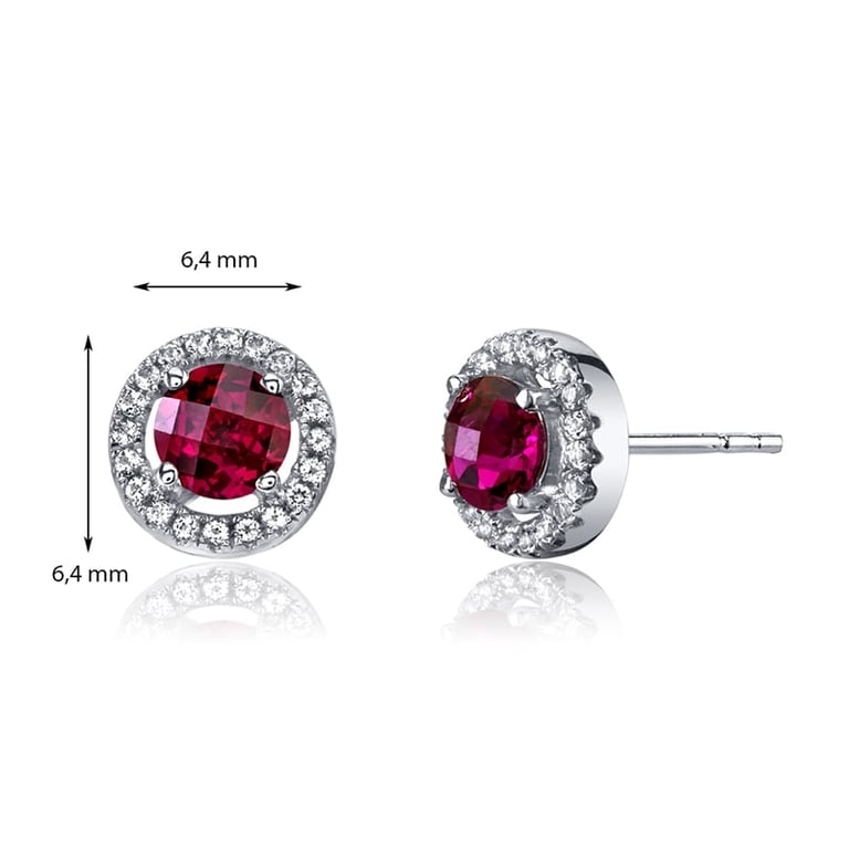 • den runden Rubin umgibt ein Halo aus weißen Topasen in 585er Weißgold