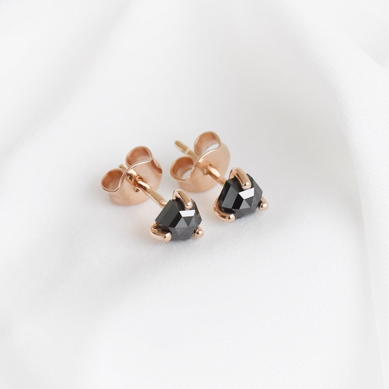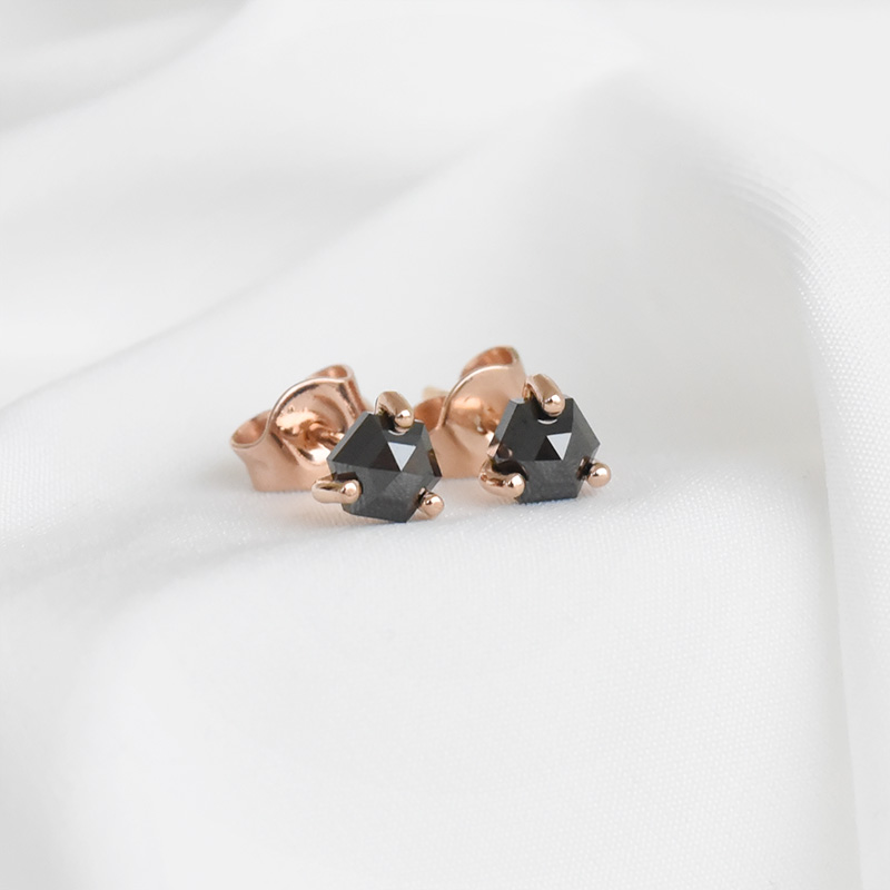 • ist ein schwarzen diamanten in Sechseckform in Ohrsteckern aus recyceltem Gold
