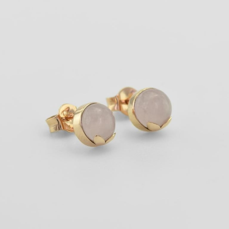 Goldene Ohrstecker mit Cabochon Rosenquartz Erica