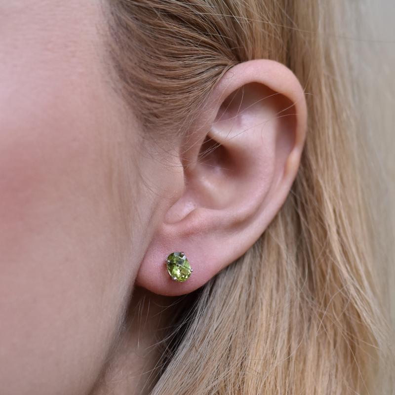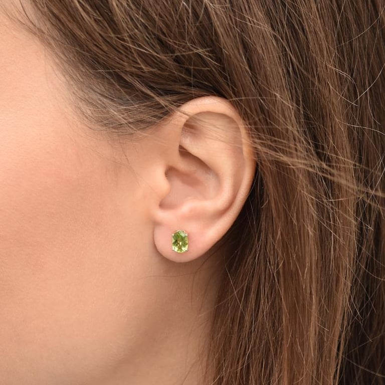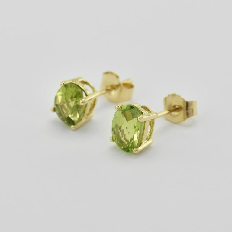 Goldene Ohrstecker mit Olivinen im Ovalschliff Qati