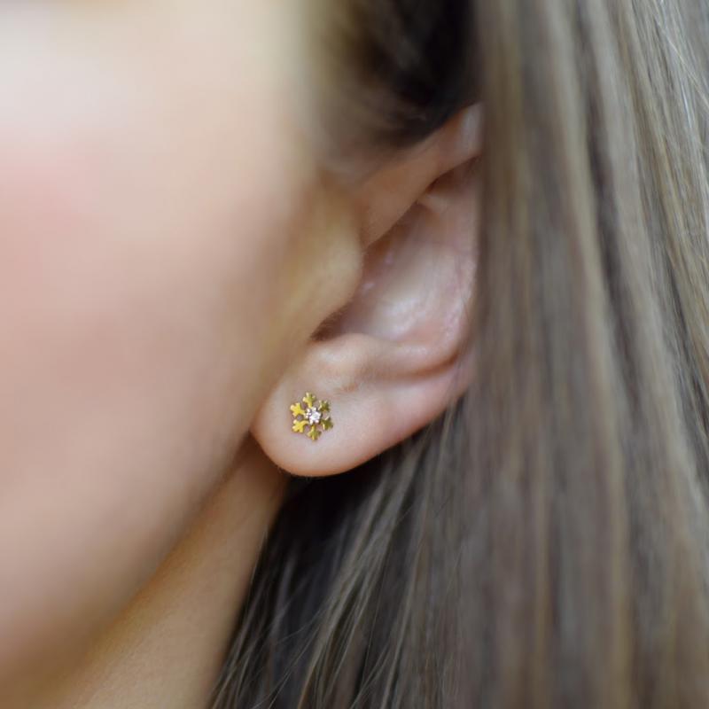 • minimalistische Ohrstecker aus Gelbgold in Schneeflocke-Form