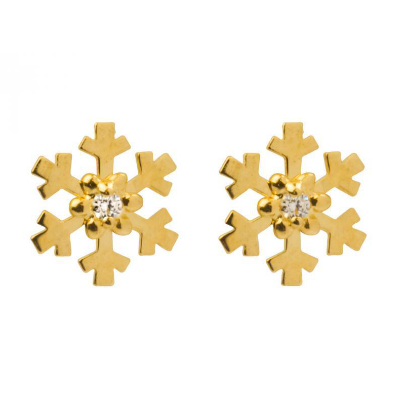 Goldene Ohrstecker mit Schneeflocke und Zirkonia Loncia