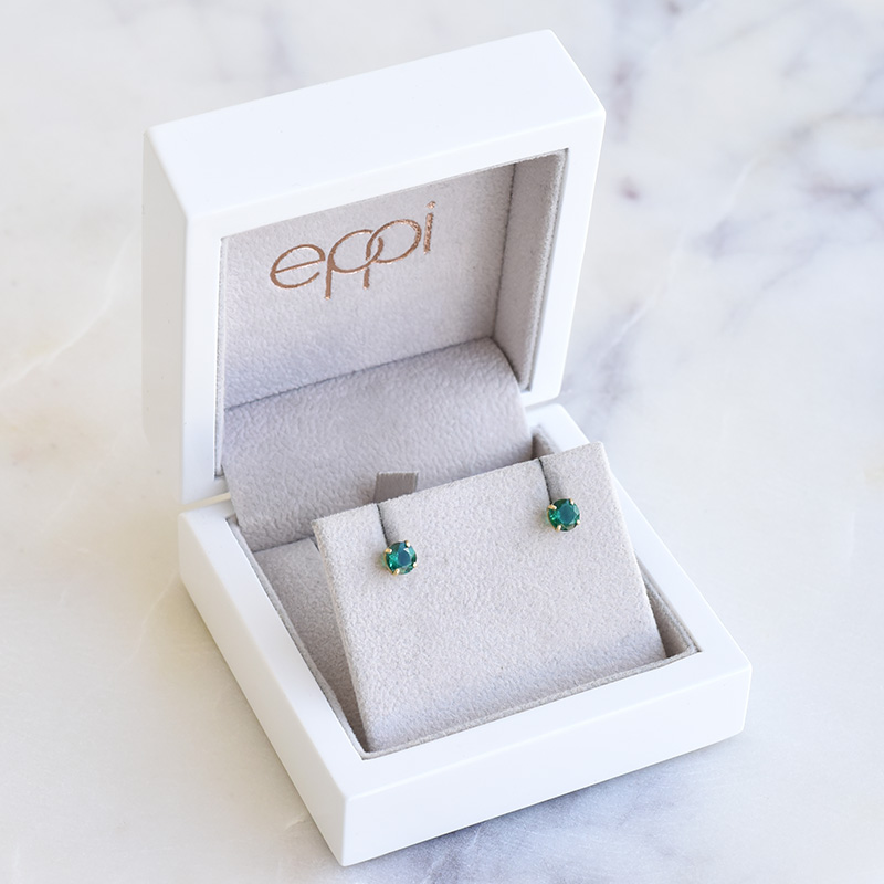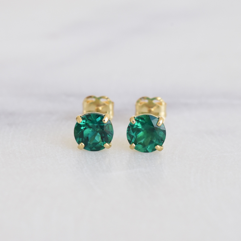Goldene Ohrstecker mit synthetischen Smaragden Fyrnel