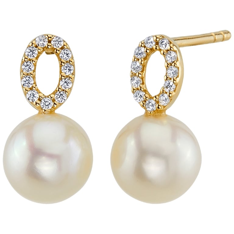 • goldene Steckohrringe mit Perlen, deren Schönheit die funkelnden Zirkonia unterstreichen