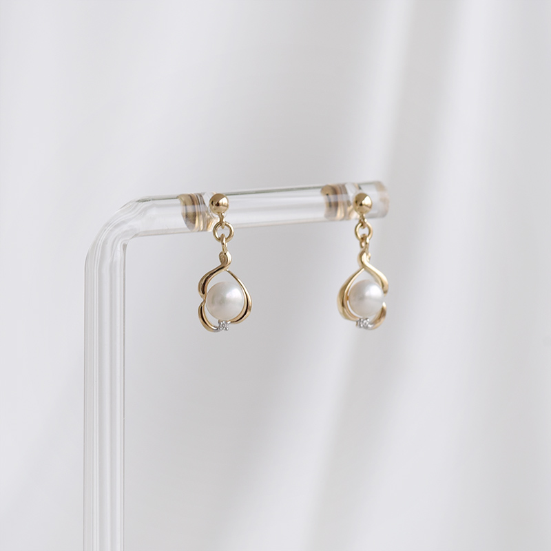 • die Hängeohrringe sind mit weißen Perlen und strahlenden Zirkonia geschmückt
