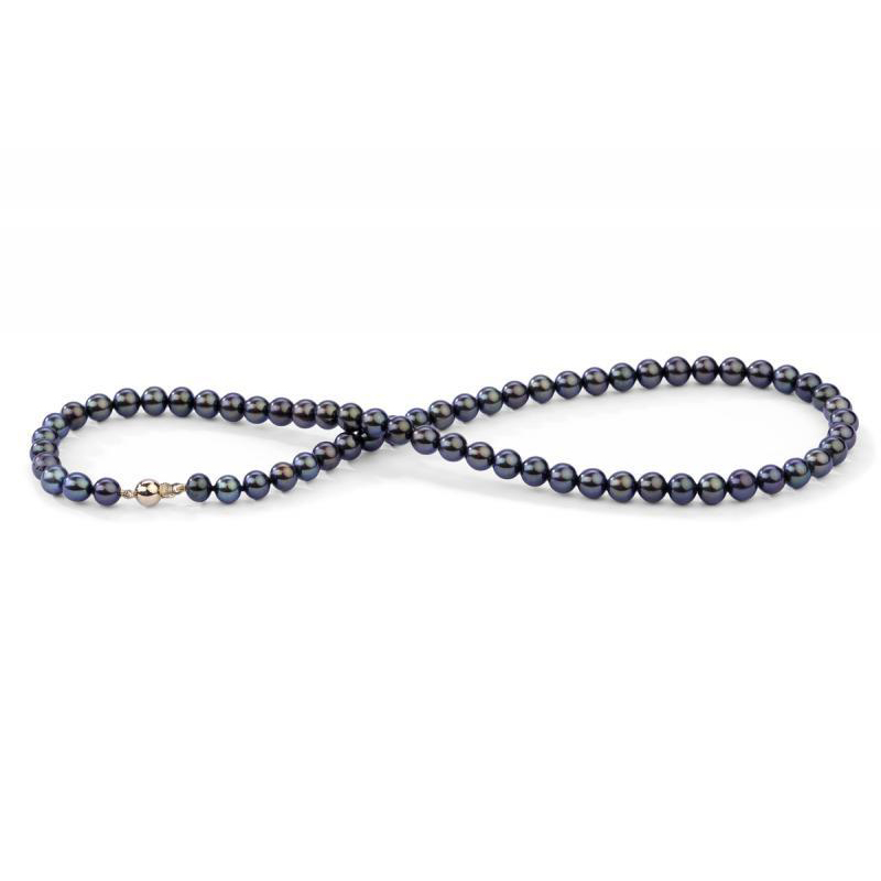 Goldene Perlenkette mit schwarzen 6-6.50 mm Perlen Elodie
