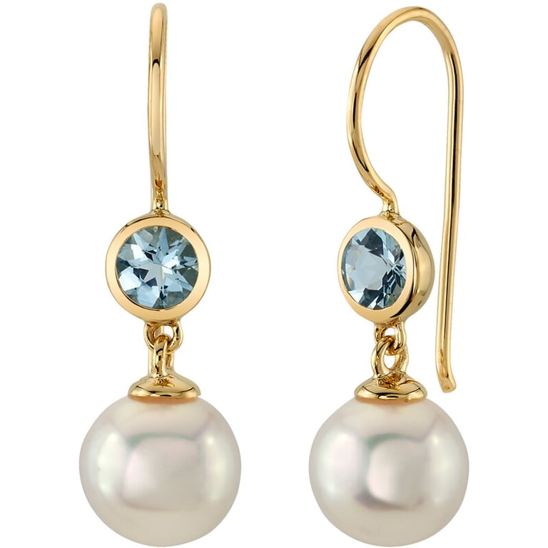 Goldene Perlenohrringe mit Lab Grown Aquamarinen Truett