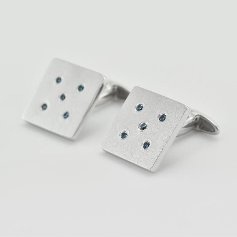 • die extravaganten Manschettenknöpfe mit blauen Diamanten sind eine sichere Wahl
