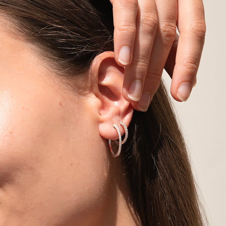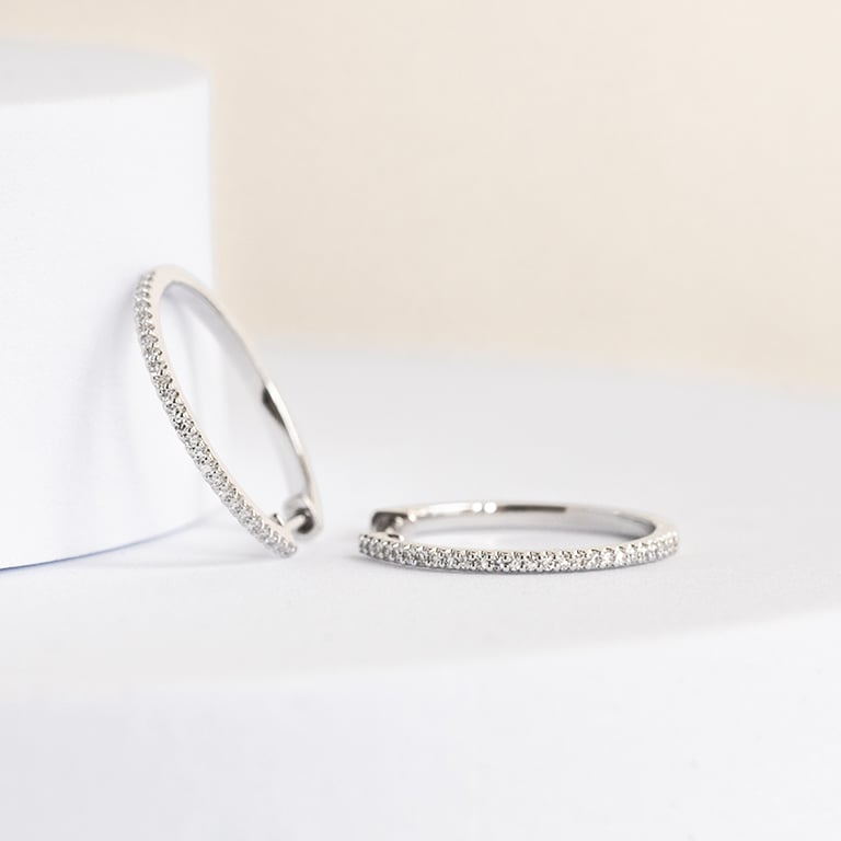 • klassische runde Ohrringe mit einem Durchmesser von 18 mm und einer Reihe von natürlichen Diamanten