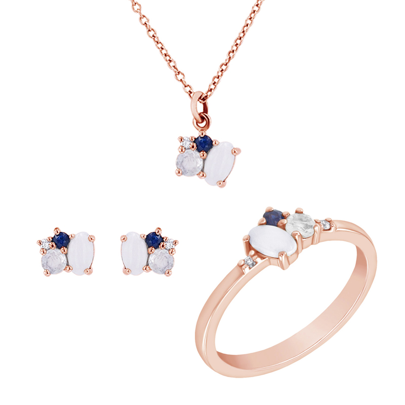 • lassen Sie sich von den Blautönen des Saphirs, glänzenden Opalen, klaren Diamanten und den farbigen Reflexionen des Mondsteins verzaubern
