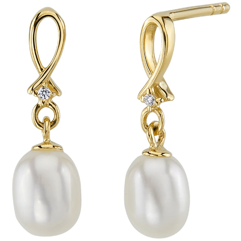• die unregelmäßig ovalen Perlen hängen an mit Diamanten verzierten Schlaufen, was an edlen, antiken Schmuck erinnert