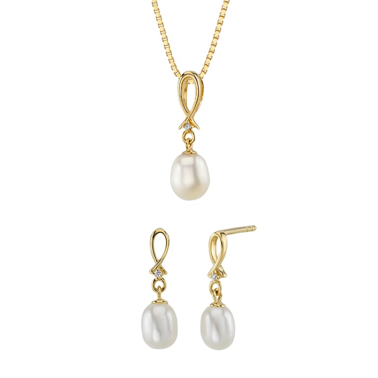• bei diesem edlen Schmuckset werden modische Barockperlen mit klassischem Gelbgold und Diamanten kombiniert