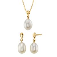 Goldene Schmuckkollektion mit weißen Perlen und Zirkonia Medea