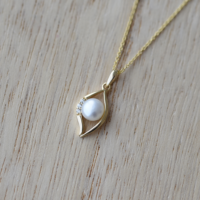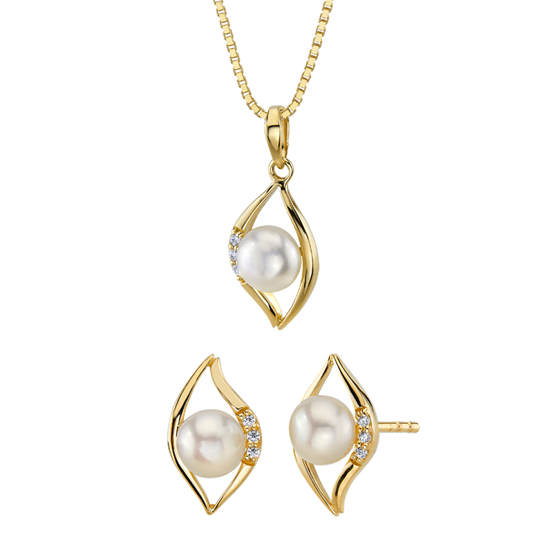 • die zeitlose Kombination aus Gelbgold und Perlen wurde durch funkelnde Zirkonia ergänzt