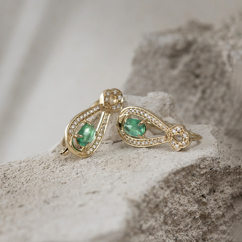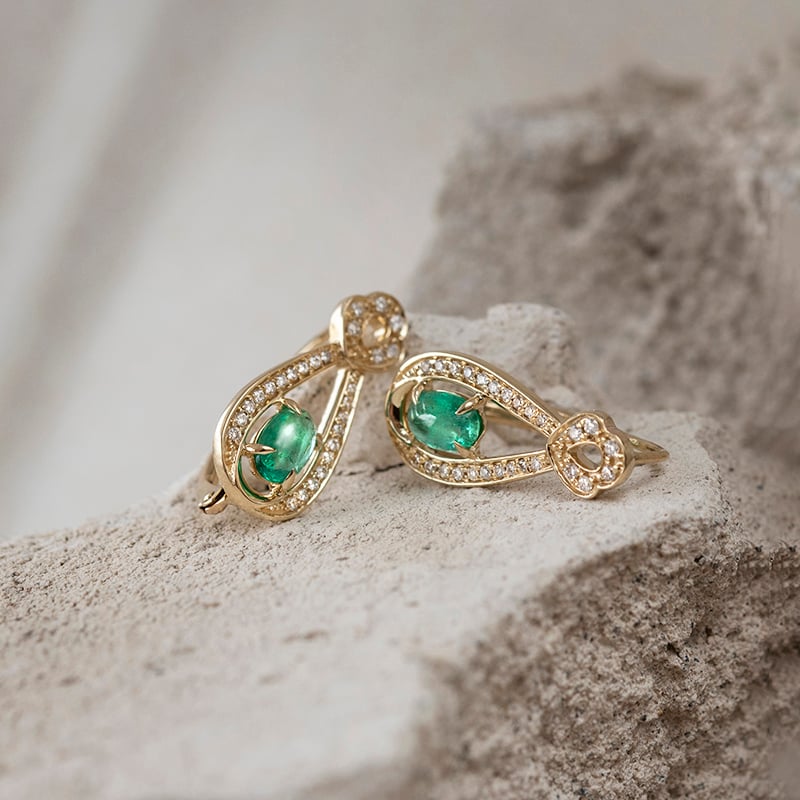 Goldene Smaragd-Ohrringe mit Diamanten Keisha