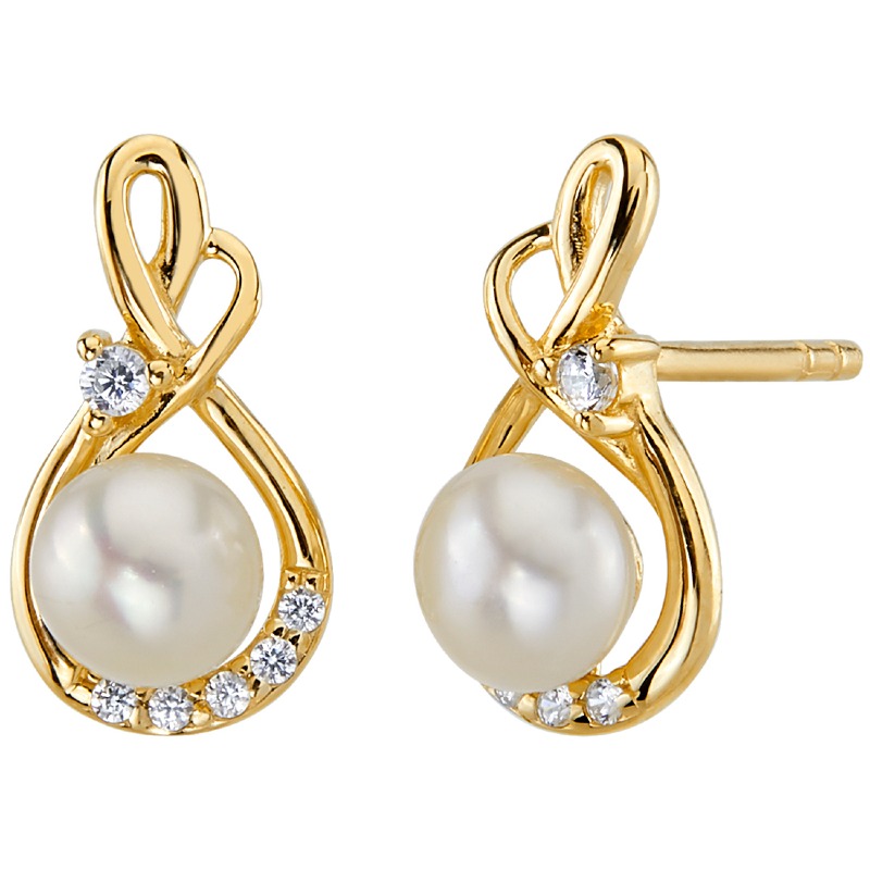 • Perlenohrringe in elegantem Gold-Design mit strahlenden Zirkonia