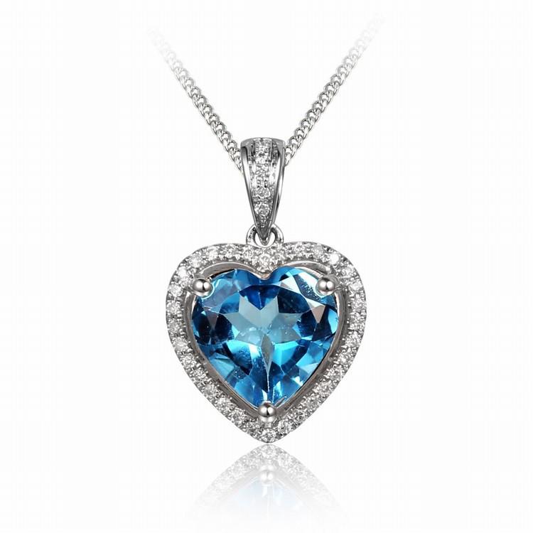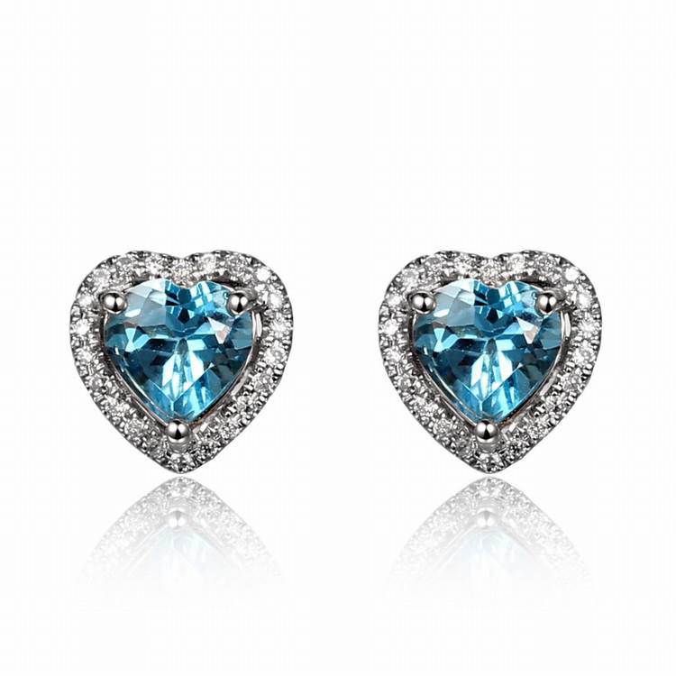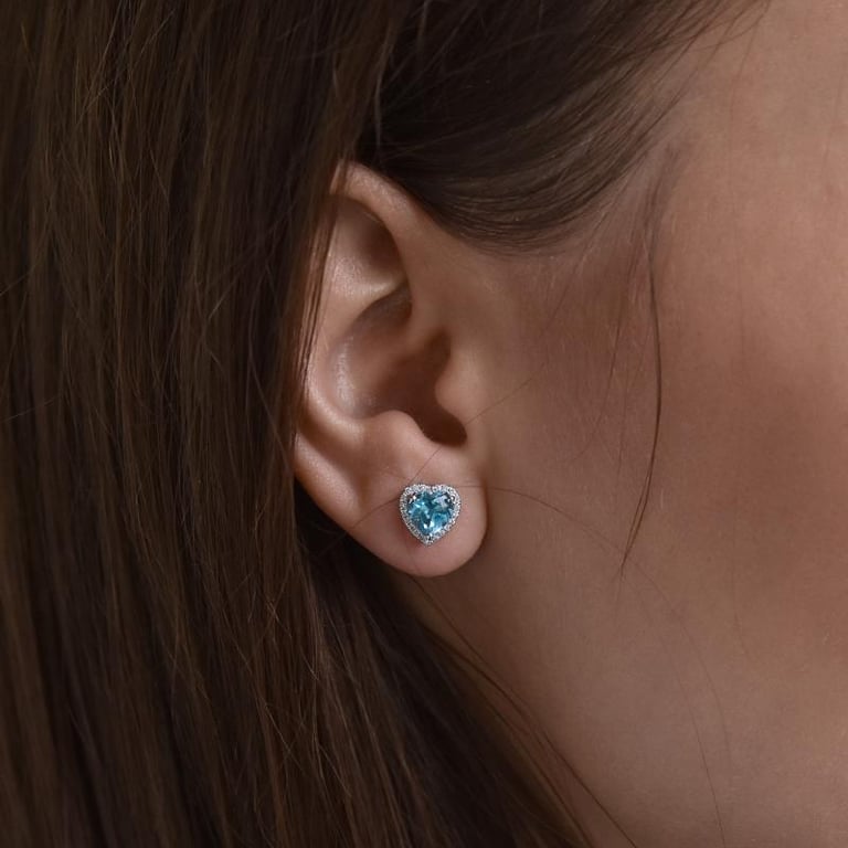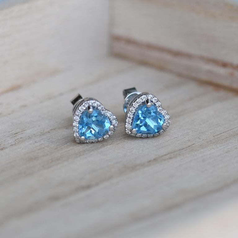 • himmelblaue herzförmige Topase werden von einem Diamantenhalo umgeben
