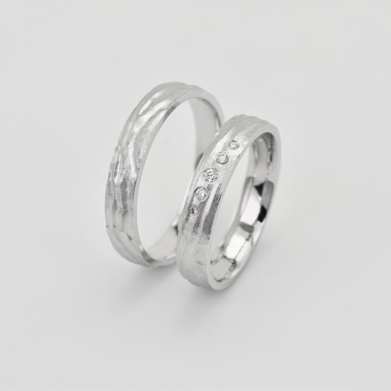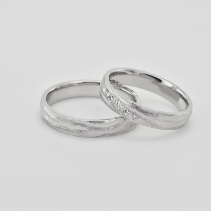 Goldene Trauringe mit matter Oberfläche und Diamanten Wynia