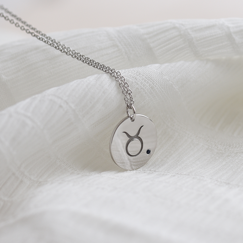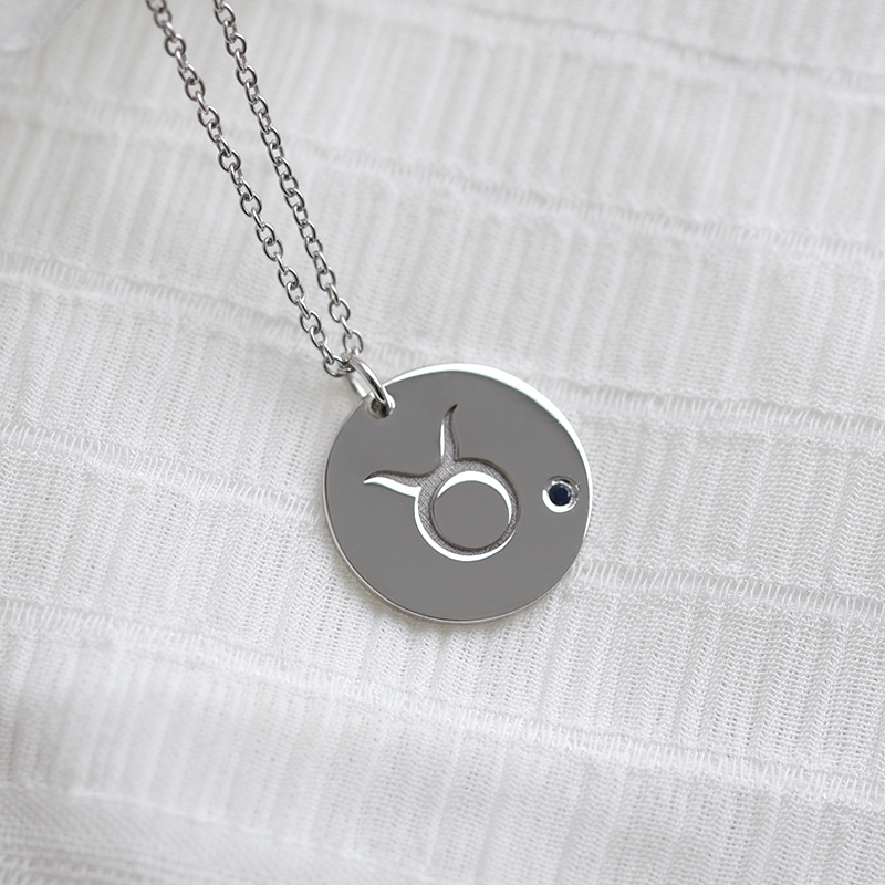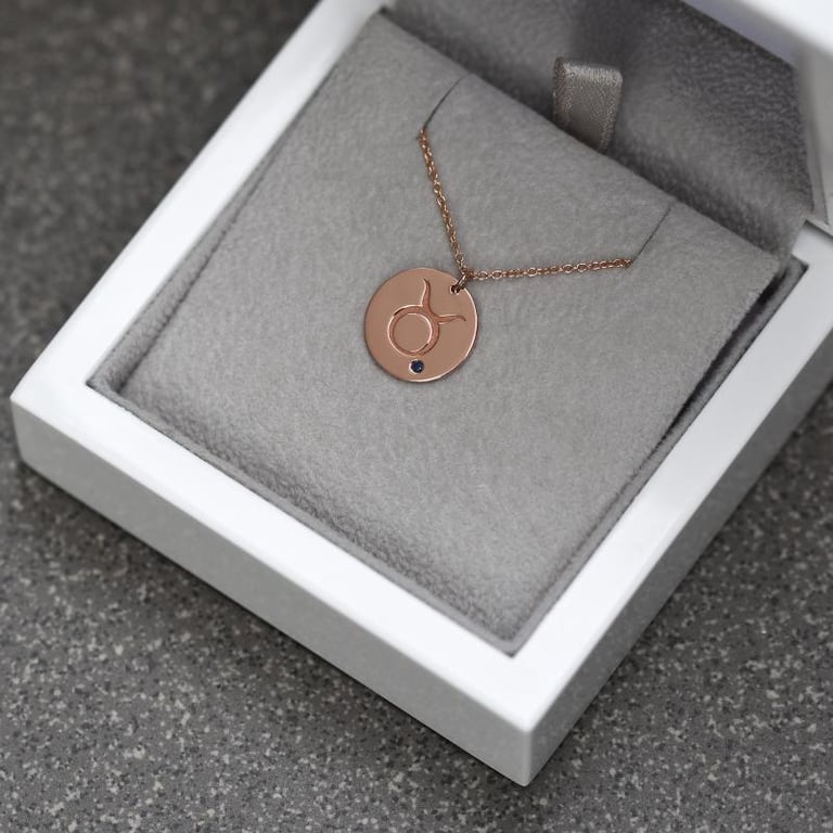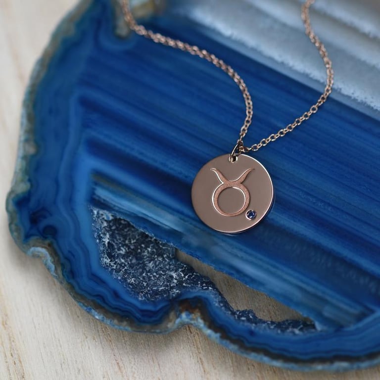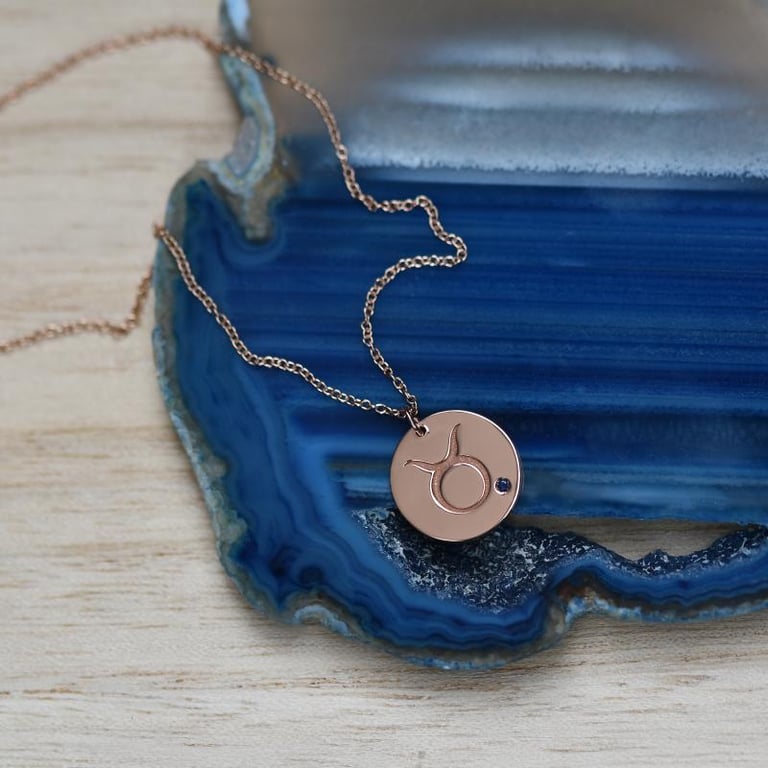 Goldener Anhänger mit blauem Saphir und Sternzeichen Stier