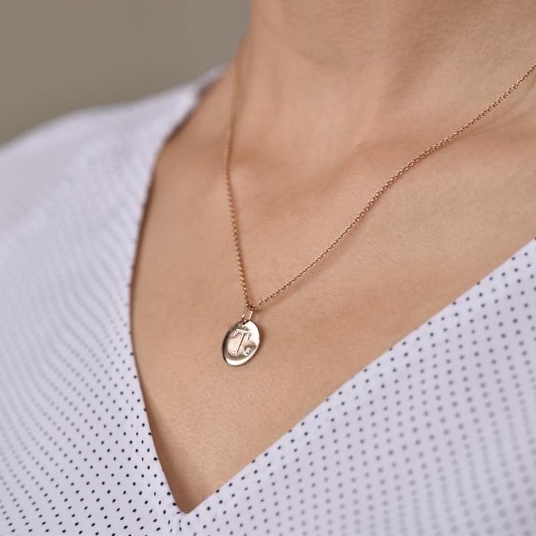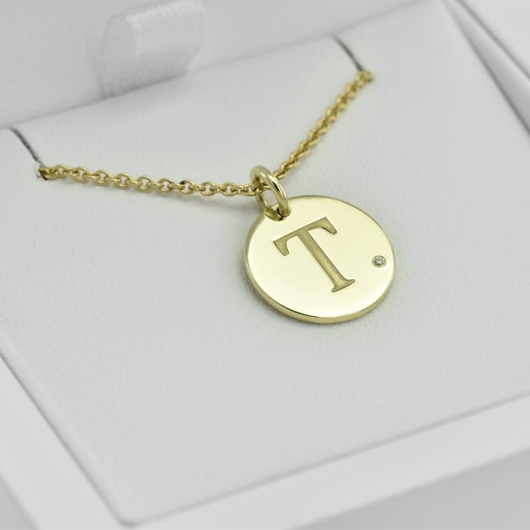 Goldener Anhänger mit Diamant und Gravur eines Buchstabens Sager