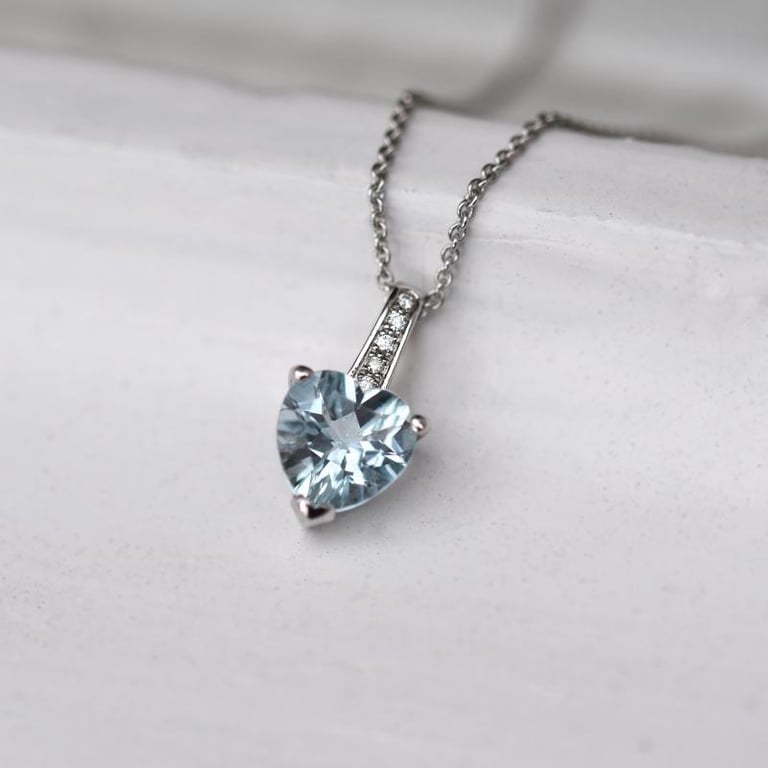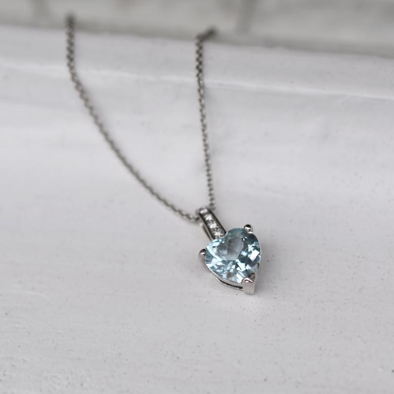 Goldener Anhänger mit Diamanten und Aquamarinherz Meghan
