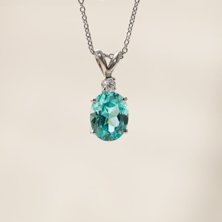 • es handelt sich um eine Turmalin-Varietät namens Paraiba, die sich durch ihre türkise Farbe von anderen Arten dieses Steins abhebt
