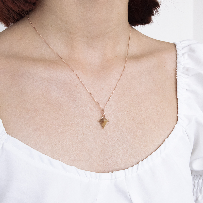 Goldener Anhänger mit einem Salt and Pepper Diamanten in Kite Form Cody