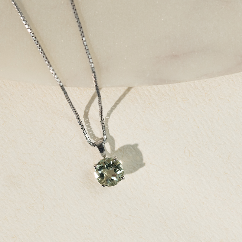 • der goldene Anhänger mit grünem Amethyst ist die richtige Wahl, denn dieser Amethyst symbolisiert Frieden und Ruhe