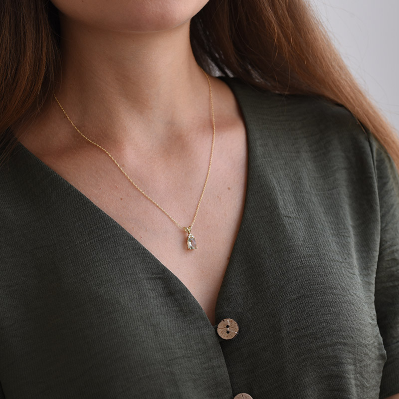 Goldener Anhänger mit grünen Amethyst und Diamanten Deandra