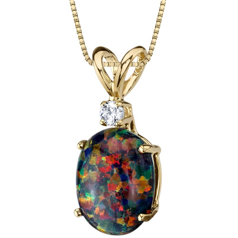 Goldener Anhänger mit ovalem schwarzen Opal und Diamanten Rafiah