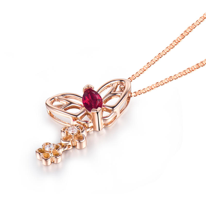 Goldener Anhänger mit Rubinen und Diamanten Papillon