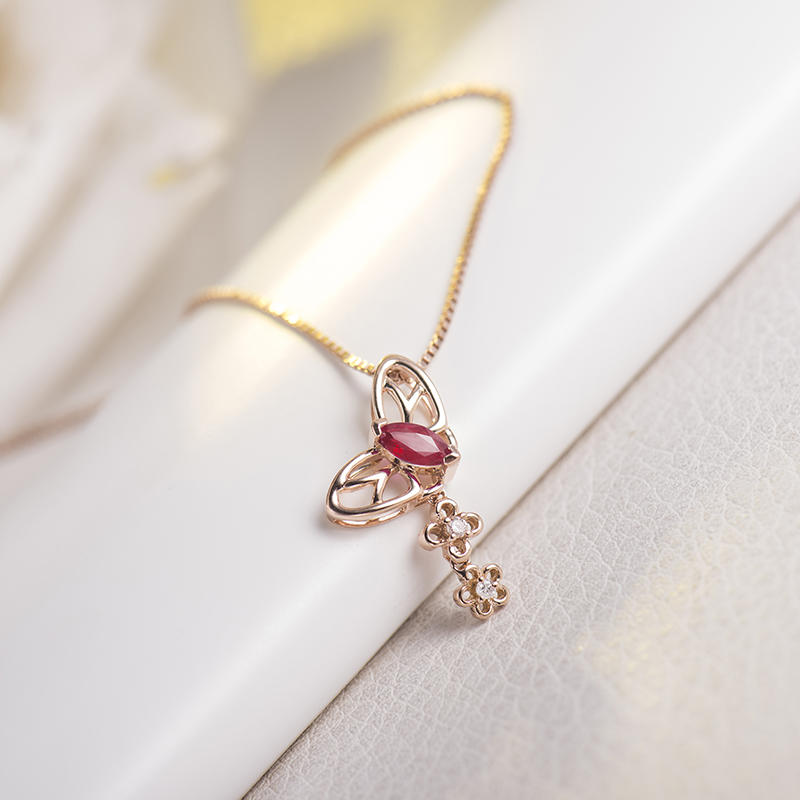 • bei diesem Goldanhänger bilden ein stilisierter Schmetterling und Blüten ein romantisches Motiv
