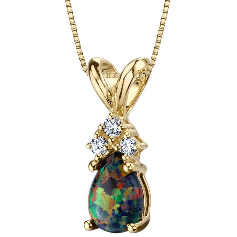 Goldener Anhänger mit schwarzem Pear-Opal und Diamanten Electrah
