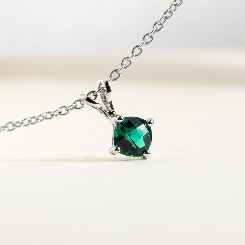 Goldener Anhänger mit Smaragd im Kissenschliff Rafyna