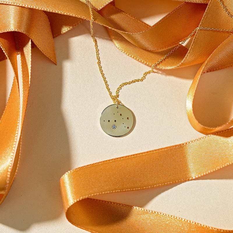 Goldener Anhänger mit Sternbild und Edelstein Nyala