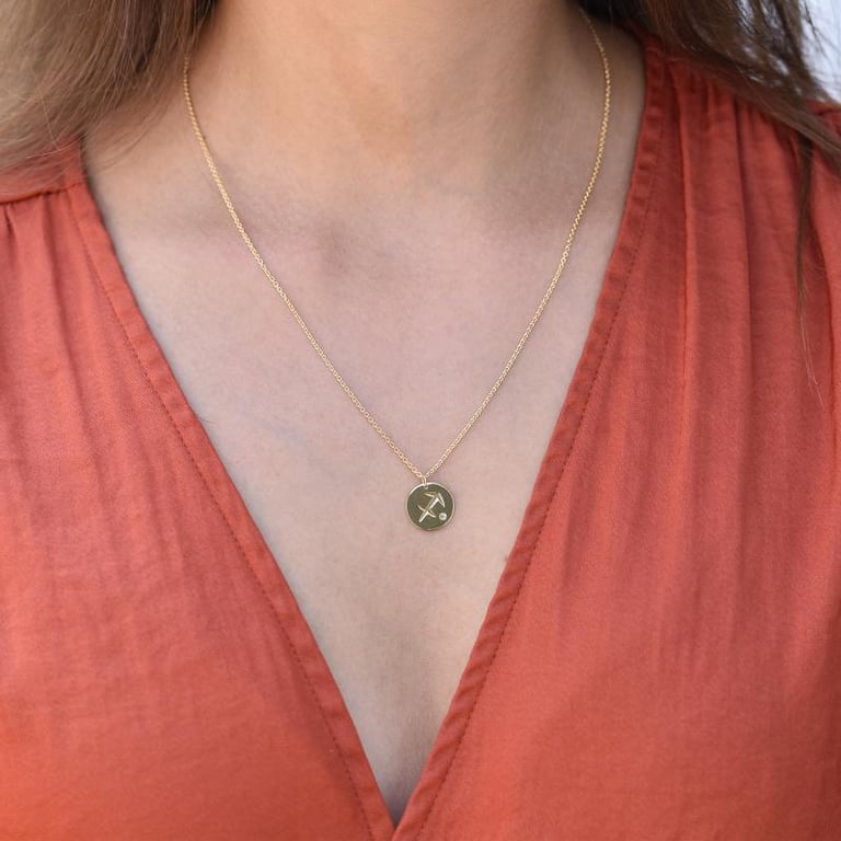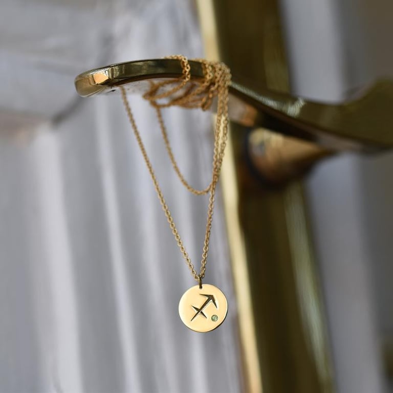 Goldener Anhänger mit Sternzeichen und Olivin Schütze
